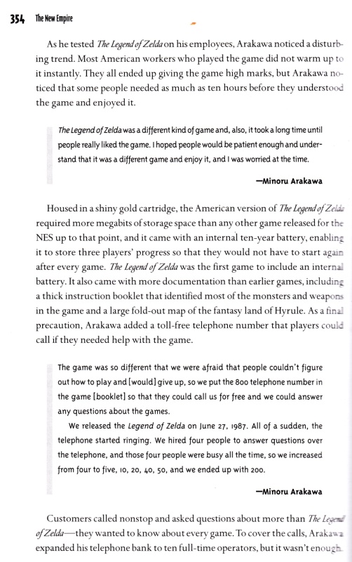 The biggest strength of The Ultimate History is no doubt the sheer magnitude with which Kent makes the voices of the makers heard. The man must have conducted hundreds of interviews. A page without a blockquote is a rare sight, up to three citations per page quite common. Over the almost 600 pages one learns how Ralph Baer had the first prototype for his console engineered in secret at his position as a division manager at the defense contracter Sanders; how a filthy young good-for-nothing named Steve Jobs (RIP) makes his first couple thousand bucks in the games industry by exploiting other people's work; or finds out what's the story with Shigeru Miyamoto's grudge against Donkey Kong Country (apparently his first draft for Yoshi's Island got rejected because it didn't look as good as DKC).