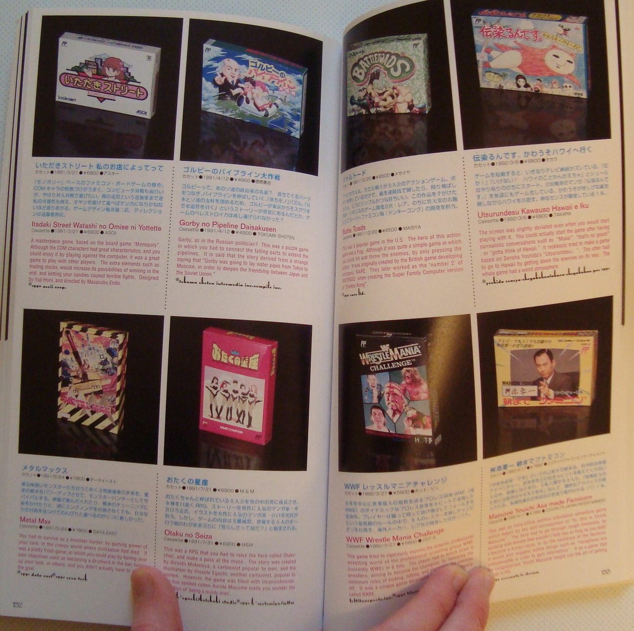 Additionally it features full-page examinations for major releases and quarter-page bites for other interesting titles (see to the right)—these are more than mere reviews though, and contain nuggets of insight regarding who worked on them and how they resonated with the public. There are photographs of everything else. This is important to note: every single Japanese Famicom game ever released has been photographed and includes an entry detailing its name in both Japanese and English, publisher and developer, precise release date, and launch price. It's safe to say that the Tokyo Metropolitan Museum got their facts right, which makes this tome an extremely valuable resource. The addition of the reviews also offers great insight into the atmosphere of the time and a snapshot of Japanese tastes. There are the obvious contenders (Mario, Dragon Quest, etc), and some US favoured titles are not covered in-depth, but significantly it contains detailed opinions on games unique to Japan which you'd otherwise never find insight on—such as an intra-office simulator fronted by an actual Japanese politician. These entries might not resonate with hardened Zelda fans, but it paints a fascinating view of the foundation of Japan's entire industry.
