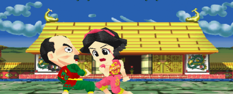 The premise allows AM2 to do all kinds of crazy cartoony stuff that makes the game a real slapstick experience: When characters run, they leave a dust cloud, and when they get hit, stars fly around them. They also all got chipmunk voices in their win pose speech samples. When crouching beneath high attacks, a goofy animation plays where they swing around their enormous heads like boxers. All the while the huge heads make facial expressions so much more visible and distinctive. The little creatures are actually supposed to be dolls in the game’s narrative: Aside from the FMV, there is a hidden factory stage that shows their assembly line when Shun fights against himself, as well as a toy shop in a Pai vs. Pai match. There is also a variant of Dural whose head is a transparent fish bowl – an its inhabited!