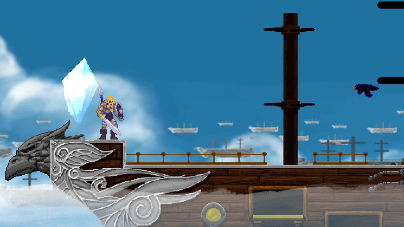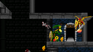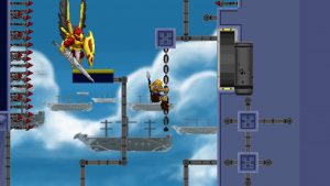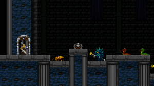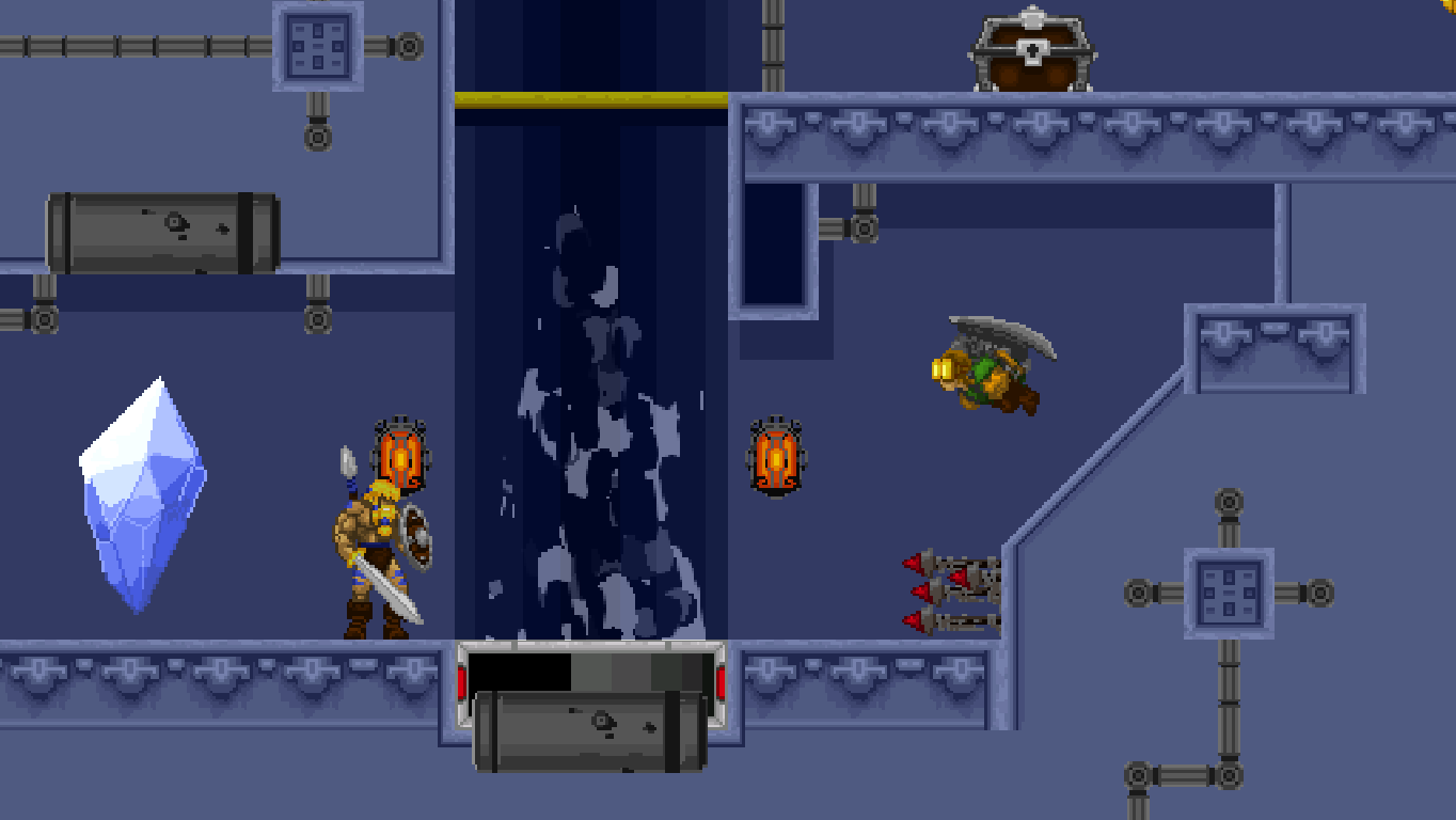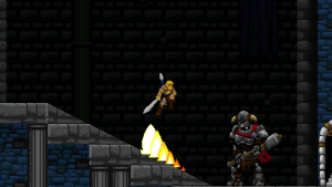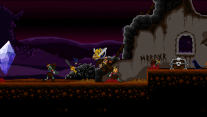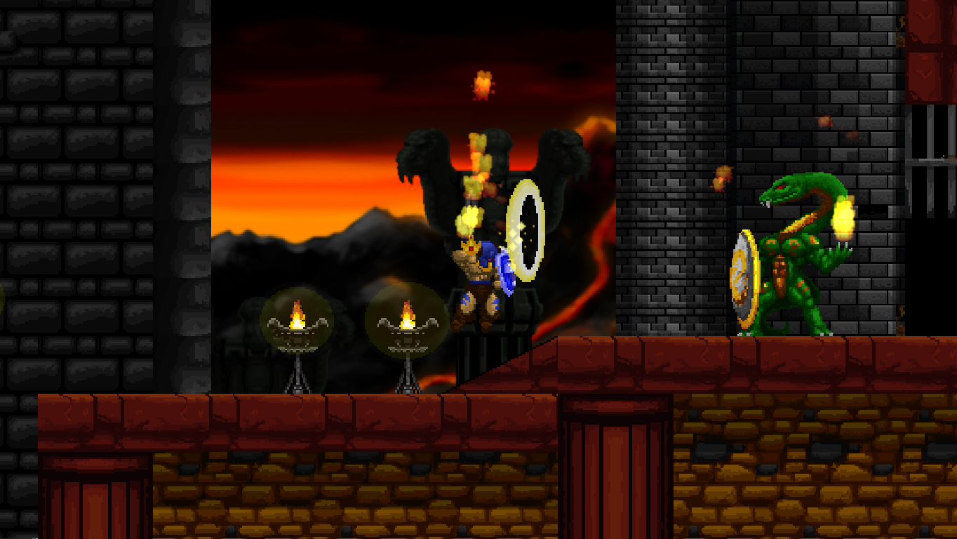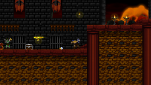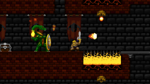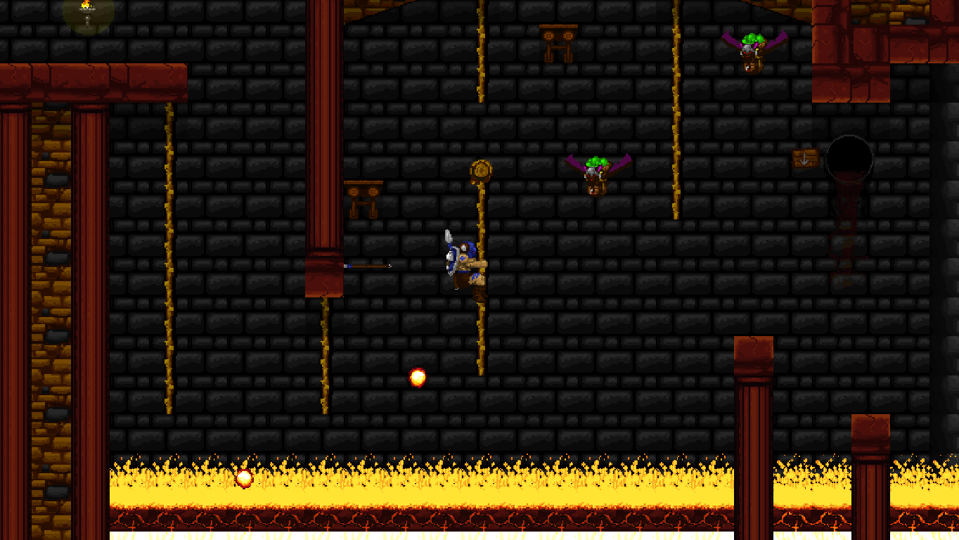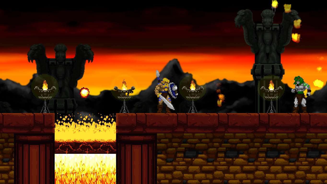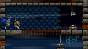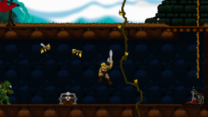 Climbing ropes and sliding down slopes also works similar to Rastan. The game features a double jump, but compared to many other modern games, the stiff jumping mechanics ensure that it has a purpose and is not just a fancy replacement for a single long jump. Only Völgarr’s evasive roll seems a bit more modern than the rest, but given how greatly it expands the range of possible combinations, it’s well worth the small clash in style. Even more satisfying is the ability to create platforms (and sometimes shelter) by throwing spears at walls, adding a subtle sense of interactivity that many of the old games lacked.