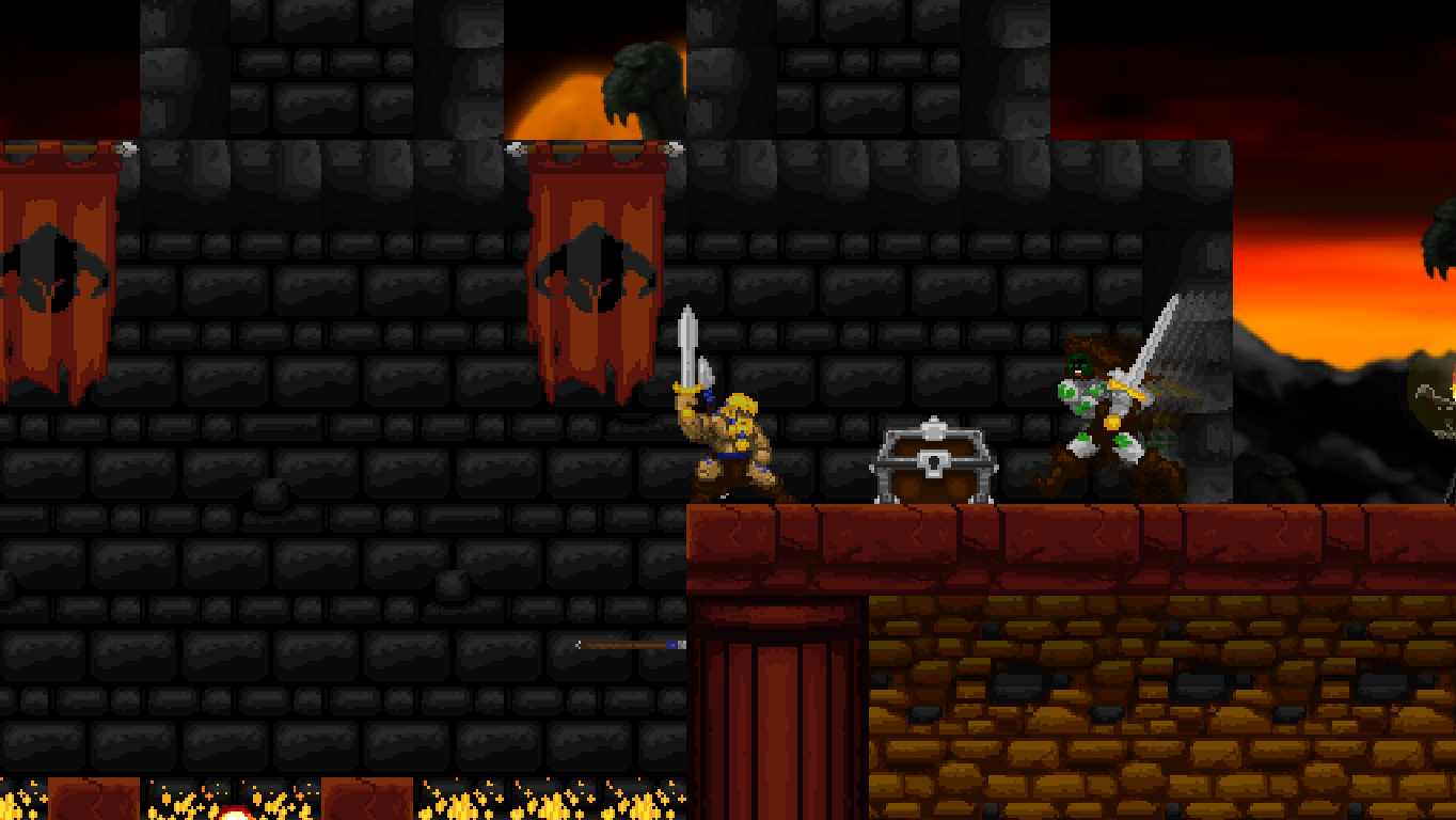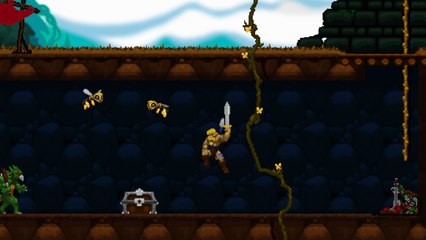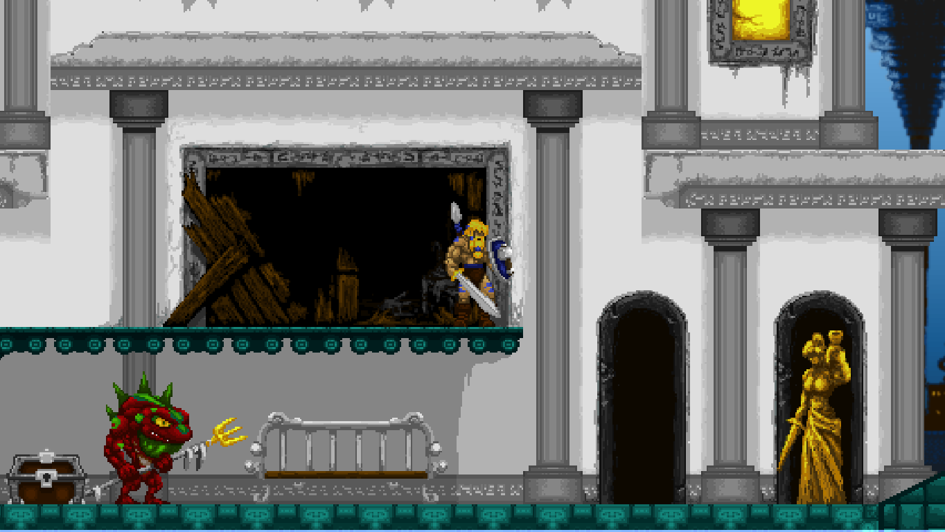 Völgarr the Viking is not ashamed of being essentially a fan remake of the Taito classic Rastan. To the contrary, it wears that label with pride, paying its respects by modelling the first few steps closely after the 1987 arcade hit – and by shoving Rastan’s rotten corpse in a corner. But while Rastan is the most obvious inspiration, it’s not the only one by any stretch. The creative leads at Crazy Viking Studio have already proven that they “get” classic sidescrolling action with their contributions to Shinobi‘s return on the 3DS, after which they decided to go independent and let their love for the ’80s action-platforming arcade experience run wild.
