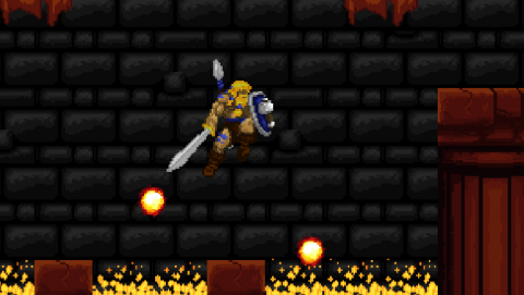 Climbing ropes and sliding down slopes also works similar to Rastan. The game features a double jump, but compared to many other modern games, the stiff jumping mechanics ensure that it has a purpose and is not just a fancy replacement for a single long jump. Only Völgarr’s evasive roll seems a bit more modern than the rest, but given how greatly it expands the range of possible combinations, it’s well worth the small clash in style. Even more satisfying is the ability to create platforms (and sometimes shelter) by throwing spears at walls, adding a subtle sense of interactivity that many of the old games lacked.