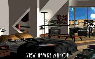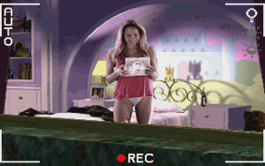 Conceptually, the game is the 1989 movie Sex, Lies and Videotape, taken literally. The entirety of the game involves sitting in your apartment, peeping on the Hawkes, and video taping everything, with the intent of using evidence against him. The video is much like the Tex Murphy games, where you have digitized actors acting in front of chroma key backgrounds, superimposed onto computer generated rooms. You are provided with a view of the exterior of the mansion and focus on every major room, though the game politely informs you when something is going on in a specific area by changing icons. The game is divided into time blocks that pass in accelerated real time, and since there’s multiple things going on at once, it’s impossible to view everything in the first go.