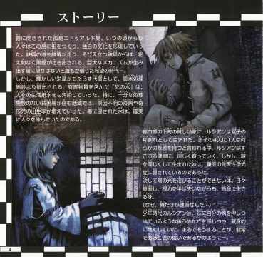 The game is set on the foggy and highly socially stratified Edward Island, and follows the misadventures of Lucian Taylor. His younger sister is bed-stricken due to a pollution-related sickness that has made her extremely light-sensitive, and his irrational guilt about this state of affairs – “Why am I the healthy one?” – pushes him to devote himself to her well-being. However, her eventual death forces him on a quest of vengeance around the desolated lands to find Sword Emperor Duran, who he holds responsible for being the manager of hazardous water treatment facilities. The plot doesn’t wander into epic battles and maintain a touching and introspective tone, supported by superb hand-drawn artworks, as well as an overall oppressive feeling through unusual cutscenes featuring scale models by a trio of experimented modelists – Takayuki Takeya, Fujita Yasuo and especially Kito Eisaku, who also designed the Nerve Tower of Sting’s first person dungeon RPG Baroque which was released around the same time as Wachenröder in 1998.