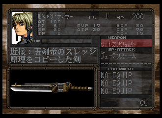 The high quality of the artistry unfortunately contrasts with the in-game 3D graphics used during special attacks, which, like many Saturn games, look fairly dated. Actually, the gameplay parts actually are the game’s low point. While it’s not substantially broken, it’s just plainly unremarkable and feels more like an excuse for the story to unfold. It’s a typical tactical RPG, with the addition of two mechanics: An AP system consisting of 99 points allocated each turn used to move around, attack or using skills and items. The other distinctive mechanic is the heating gauge. Characters uses what the game calls Sledges – a contraction of the term Steam Refined Gear – weapons that uses heavy hydrogen in order to enhance the weapon’s capabilities. The drawback is that they can overheat fairly rapidly if used at full power and must be managed lest your sledge will be unusable until your next turn. Combined with the lack of magic spells, it is a neat touch that makes the gameplay consistent with the game’s setting.
