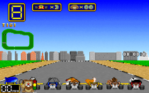 The graphics are pretty good, even if the tracks could do with a little more scenery and detail. Of course, Mario Kart had the same issue, so it’s just a small complaint. All the playable animals are cute to look at, and the hedgehogs you collect as ammo have a few amusing animations while they’re sitting on the track, like reading a newspaper or lifting weights. The music is your standard DOS game soundtrack, which sounds pretty good, if unremarkable. The constant honking and animal noises that play whenever you get near another kart can start to wear on your nerves, though.