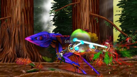 The levels do feel a little cluttered and it’s sometimes hard to tell you what will hurt you and what won’t. However, whenever you come close to mortal danger, the screen zooms in and time slows down automatically, allowing you a chance to dodge or otherwise avoid the attack. It’s especially handy since your character dies in a single hit.