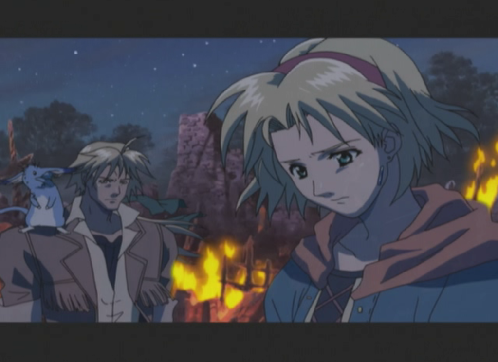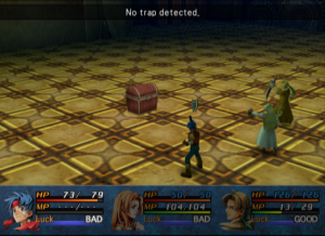 Important NPCs from the original reappear this time around as playable characters. Calamity Jane, Emma, and Zed are all permanently recruitable. Jane’s butler Magdalen and the Elw girl Mariel are also playable briefly, but you can’t recruit them after their time in the party. To review: Jane is a bratty treasure hunter with a secret heart of gold, a fairly straightforward tsundere type toward Rudy; Emma is the narcissistic scientific genius whose excavation of the golem Lolithia kicks the plot into motion, and whose technology is later used for mastering air travel; Zed is the ninja-esque comic relief villain who stops helping the Quarter Knights off-screen at some point in the game. You recruit them all extremely late in the game—when the final dungeon opens up, in fact—so their use is exclusively in making side quests and the very end of the game easier.