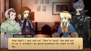 The group she forms is called Chevalet Blanc. The main protagonists are Clarissa and Felius; a magician named Labyrinthia Wordsworth who was Alexia’s personal tutor; a young boy and heir to the noble House Brenton named Levin Brenton; a mercenary who wishes to destroy Elesius for its crimes against humanity named Ragnar Blitz Lebrett; and Labyrinthia’s companion animal Tony, a white dog. There are several other NPCs crucial to the plot, as well as other spoiler-y companions who join along the way, but these are the core protagonists. Like many other SRPGs you can also recruit generic mercenaries to fight alongside you in battle.