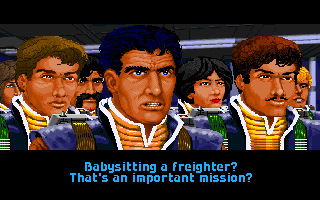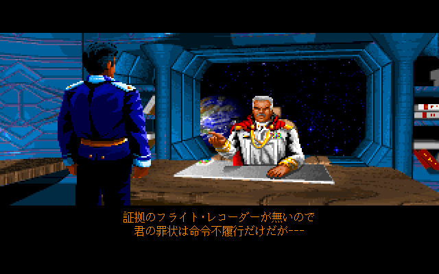As the Emperor of the Kilrathi and Crown Prince Thrakhath celebrate this latest victory, the pesky human pilot that has gotten in the way of their plans is paying for it. Indeed, Admiral Tolwyn, who presided over your court martial, calls you a traitor to your face, accusing you of collusion with the Kilrathi. He refuses to believe your side of the story: you saw the Kilrathi stealth fighters, which can become invisible on a whim. You have no evidence, of course. But since the court couldn’t find any solid evidence of treason, all they can do is demote you to Captain and ask you for your resignation and admission of guilt. You refuse… and are reassigned to InSystem Security. As glorified chaperone to convoys far from enemy lines, you’ll be out of sight and out of mind in the backwater of Caernarvon station. Ten years pass.
