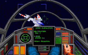 Compared to its predecessor, it’s easy to think of Wing Commander II as a much safer effort, but it wasn’t without ambition. Many features teased earlier on had to be nixed in order to focus the team’s work on the necessary improvements to the engine, audio, and storyline. Among these were ideas about making the player character customizable, multiplayer modes through modems, and even a mission construction set for both Wing Commander I & II were mooted. Ultimately, none of these would be included in the final game, but would serve to inspire future spin-offs Wing Commander: Armada and Wing Commander: Academy. The game’s most lasting contribution to the series, gameplay-wise, was also a small, quality-of-life upgrade: the ITTS system. The game calculates the trajectory of an enemy fighter, and provides a moving target reticle indicating where the player should be aiming their guns in order to hit the enemy. This helps do away with the complexities of mentally calculating the speed and trajectory of your target.