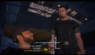 The perky Rachel is as flirty as she’s in love with her job. She’s happiest when deep in the guts of a fighter, tuning it just right to make it sing. She helps you with ship selection and loadouts, and gives you a quick evaluation of your mission results after returning to the Victory. You might also end up in a romance with her, should you make the right moves.
