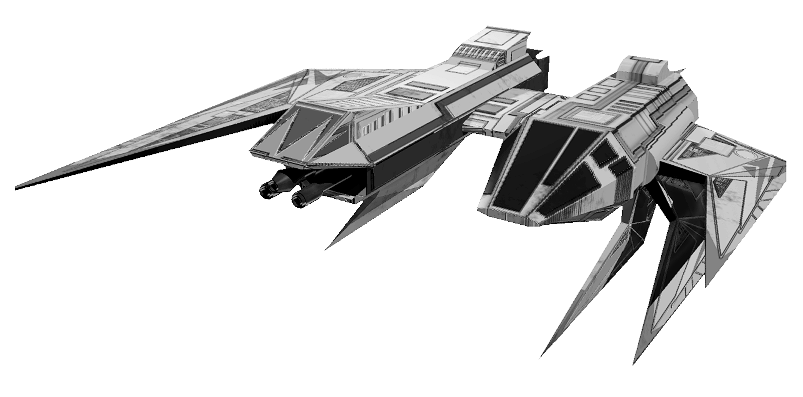 The film side was still intrinsically linked to the game dev side, especially when it came to art and design. Art Director Chris Douglas created much of the visual identity of the game. A veteran of the series since the Secret Missions add-ons, he built on the existing aesthetics for Terrans and Kilrathi to make them more distinct. The Confederation became more utilitarian, with chunky, blocky starships that would look good in both FMV CGI as well as the in-game, low-poly graphics. Meanwhile, Kilrathi ships became more detailed, with sharp asymmetrical profiles that resembled teeth, claws, knives or axes. This asymmetry had not been possible in prior Wing games, which used pre-rendered sprites that necessitated symmetry so they could be mirrored at different angles to save time, space and memory.