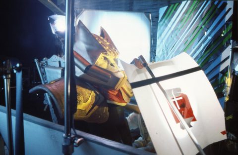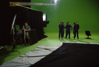 Chroma key involves making a small range of colors transparent so that other elements can be composited in, such as matte paintings or special effects like moving starfield. It was quite common in Sci-Fi and Fantasy productions, but the Wing 3 team innovated with the sheer extent of its use. With the exception of certain props, sets were made up of computer-generated images. These backgrounds were created back in Texas by Origin, and were then composited in real time during the film shoot with a system known as Ultimatte. After a take, actors could look at the Ultimatte machine’s monitor and see the CGI background already added into the scene. Such extensive use of chroma key caused several headaches for the crew, as the lighting for actors had to match the CGI backdrops. Any delay between backdrop creation in Texas and its safe arrival in L.A. meant the film crew did not know how the scene needed to be lit, necessitating reshoots once said backdrops arrived.