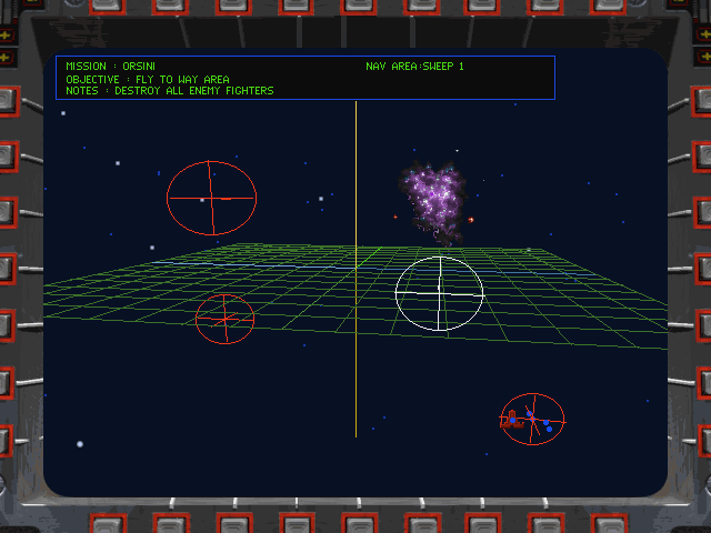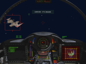 With Wing 2 as a baseline, the team aimed to refine and improve what already worked. They used a new iteration of the RealSpace engine originally developed for Strike Commander to bring gameplay into 3D with texture mapping. New features abounded thanks to the leaps in graphics and processing power. The navigation map, ostensibly near-identical to the previous iteration, can now be rotated in 3D as shown in the briefing cutscenes. Cockpit graphics are now presented with an impressive digitized look, but the option exists to toggle it off to see space largely unobstructed. Power distribution, a feature present in competitor space sim X-Wing, is also available. Players can maintain a balanced configuration, or allocate power to a specific system according to the situation between guns, shields, engines and damage repair.
