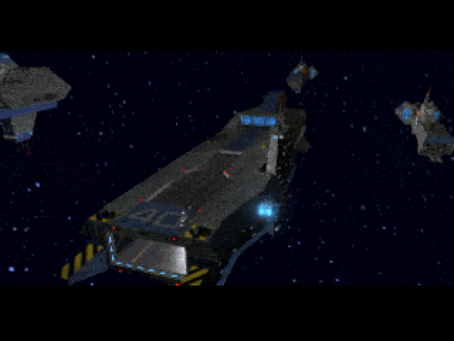 A port for the Sony PlayStation followed in 1996, a logical move considering the console’s runaway success. Electronic Arts took the reins this time, with some QA support from Origin. This version retains the newly added cutscenes from the 3DO version, and cutscene quality is only slightly lower. Ship interiors are still removed, as are planetary missions. But this is where similarities end, as missions are now basically carbon copies of their PC versions, and there’s no evidence of the ship retexturing from the 3DO port. The greatest loss for immersion are cockpit graphics, completely absent from this version rather than being an option as in the 3DO port. Possibly the most frustrating part of this port is the amount of times one is confronted with the loading screen.