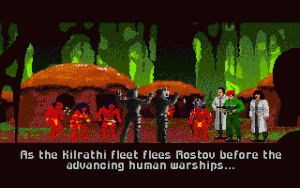 While clearly superseded by future installments, the first Wing Commander is still a fun, if frustrating, experience. The game doesn’t scale very well to different processor speeds, and playing it on modern system is a matter of constantly juggling the CPU cycles to get the ‘sweet spot’ that will make the game run adequately. It’s still engaging, but can leave a modern player banging her head in frustration after an asteroid comes out of nowhere and, in less than a second, pulverizes her plane.