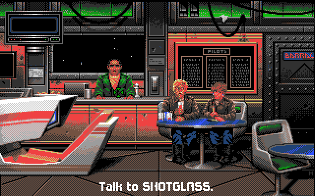 The Claw’s bartender-in-residence, Shotglass has recently retired from piloting due to his injuries. His welcoming demeanor makes him a perfect source of advice and information on other pilots, as he’s flown with most of them. He’s clearly served in the space force for a long time, as he has in-depth knowledge of Kilrathi aces, tactics, and even the Kilrathi names for certain systems.