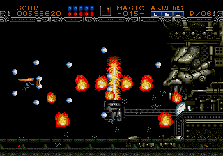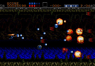 Each level has at least a mid boss and an endboss, and they sure are messed up. For the most part, they all look like grotesque human abominations that have been fused with metal. This is some of the most interesting sprite-work seen from the 16-bit era, and is almost worth the price of admission alone, even for non shooter fans.