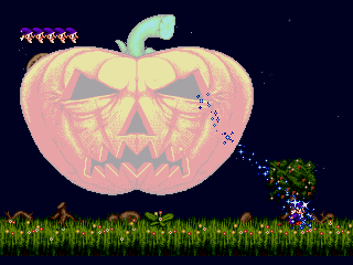 At the end of each “world”, you’ll get into a boss fight, fighting such enemies like a giant clock, a giant pumpkin, or a giant snake. The theme goes on like that. These fights are the only actual point in the game where you have any actual conflict, and as such, play pretty differently to the rest of the game. In the boss fights, the A button lets off a beam of magic that homes in on the boss and deals damage to it. You don’t have to aim, but it will take a few seconds to recharge if you use it for too long. You also get a health bar with about five or so hits on it, and if it runs out, you lose a life and have to redo the fight.