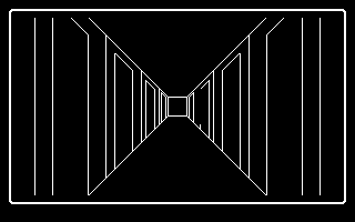 The original version of Legacy of Llylgmyn was the first episode to introduce the characteristic windows interface to the series. It looks a lot more slick than its predecessors and offers a much bigger 3D window than before. The interface elements can be toggled off to get an almost full screen view, although there are still about ten pixels of black borders on each side. The game retains the primitive wireframe graphics and four-color monsters, though. On the Apple II, the third Wizardry scenario also told the background story within the program for the first time, in form of an illustrated intro with some neat primitive pixel art. Oddly, this sequence was removed from every single port of the game, be it on consoles or home computers.