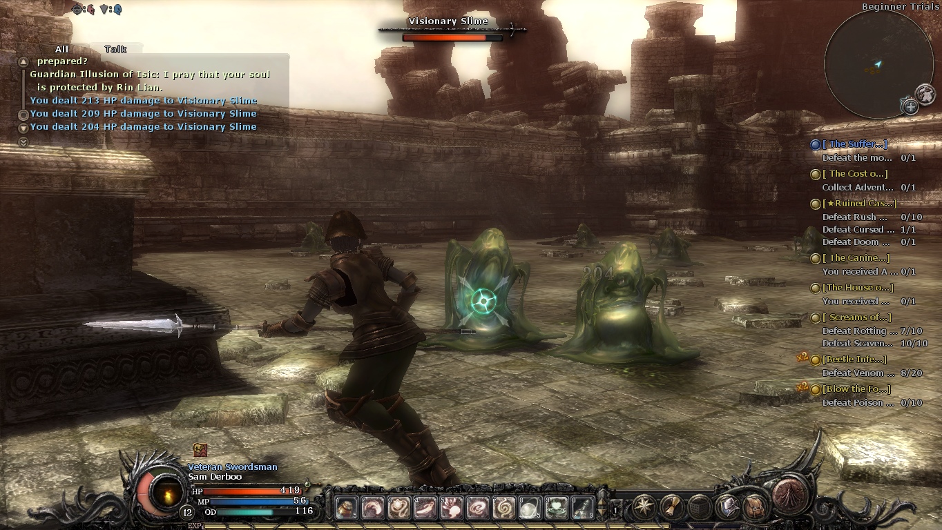 The skill tree is a fairly typical modern RPG affair, where certain skills become available from certain levels, and unlock certain other skills further down the roots. The method has become so overused it’s rather trite, but at least the ability to change classes remains. The game launched rather miserably with only the four base classes, but the familiar prestige classes were introduced in early 2013. They only are accessible in the capital, though, so a lot of time has to be invested to ever get the chance to learn them, which is tied to a special promotion quest.