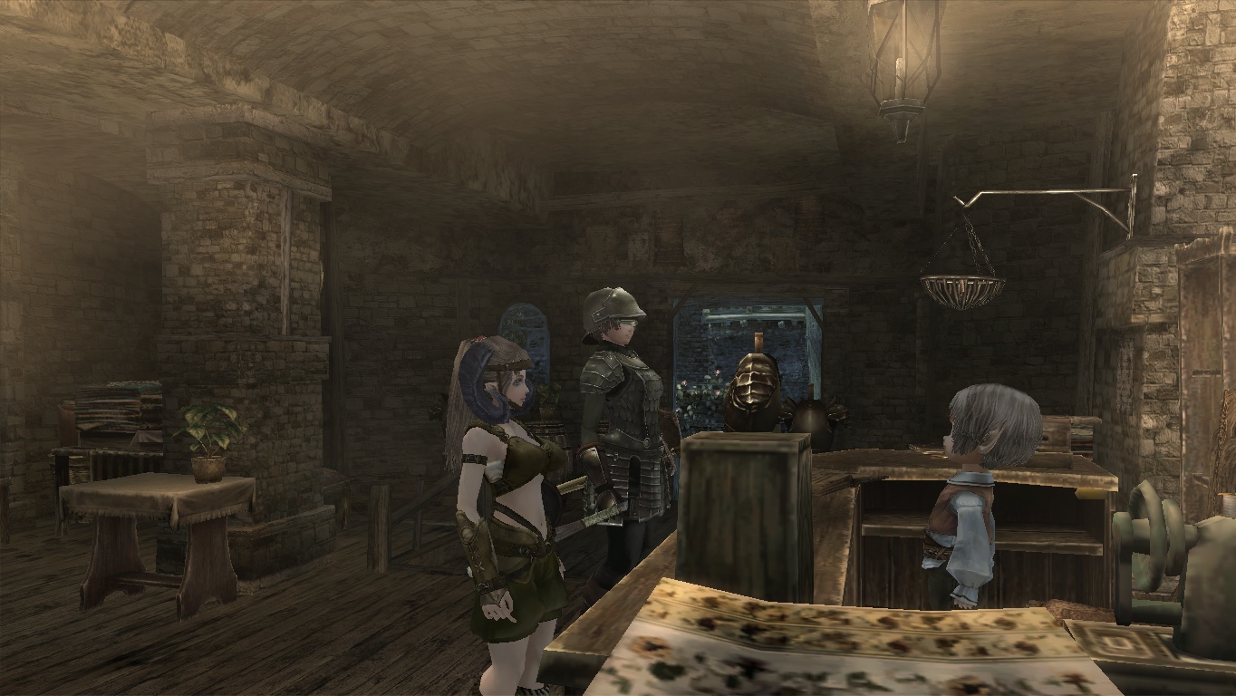 Each account allows to create up to three characters with the typical Wizardry Renaissance races of humans, elves, dwarves, gnomes and porkul. Contrary to the established worldview, though, dwarves can only be male, and gnomes only female. The choice between the four core classes is free. Players are then dropped inside the town of Illfalo, which is the only base of operations for a long, long time. It’s later possible to get to the capital of the kingdom as well, but that requires a character level of 30, which is equivalent to several hundred hours of play. Illfalo is a great place to start an RPG though, with its several quarters, beautifully designed shop interiors and windmills and hot-air balloons in the background. It is a typical JRPG town, with static NPCs, most of which are shop owners of some kind, while others provide the player with quests.