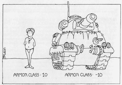Wizardry’s story isn’t as boring as it sounds at first. Sure, it’s the same old “go and kill the evil wizard”, but Greenberg and Woodhead fancied the whimsical, which gave the setting a new twist. There is little heroic about the quest in Proving Grounds of the Mad Overlord. Instead of drawing the usual black & white picture with knights in shining armor, the party consisted simply of hired swords for the eponymous Mad Overlord. Trebor had only gotten mad recently, after the wizard Werdna paralyzed him with a spell to steal his magical amulet right in front of his eyes. To mock his arch enemy even more, Werdna used the amulet to create a 10-story maze right beneath his castle. Now driven legitimately insane, Trebor decided to abuse the maze as training grounds for applicants to his personal guard, hoping that someday someone would be able and crazy enough to get to the very end, slay the wizard and bring back the amulet. Wizardry kept this slightly silly tone in the manual illustrations. Those were provided by Will McLean, of Dragon Magazine and Advanced Dungeons & Dragons Dungeon Master’s Guide fame, who happened to be a college friend of Greenberg. Several of the messages and special encounters throughout the adventure are also rather on the whimsical side.