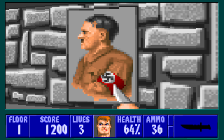 Wolfenstein is perhaps most infamous for having been banned in Germany for several reasons. The Federal Examination Office for Youth-Endangering Publications/Media (BPjM) placed Wolfenstein 3D on its “Index” in 1994 due to excessive violence. Under normal circumstances, when a game is “indexed,” this means that it cannot be advertised or displayed on store shelves, and must be kept “behind the counter.” In Wolfenstein‘s case, however, the game could still not be legally purchased, due to a German federal law that forbids using “characteristics of unconstitutional organizations,” – in other words, Nazi imagery such as swastikas and portraits of Adolf Hitler, and the game’s opening theme, an Adlib-powered rendition of the Nazi Party anthem, “Horst Wessel Lied.” While it was not illegal to own a copy of the game or download it from a BBS, it was certainly illegal to sell it, so many German fans of Wolfenstein took to referring to the game by a codename, “Hundefelsen 4C,” so that they could continue distributing copies among themselves.