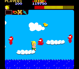 The NES port by Hudson, under the name Takahashi Meijin no Boukenjima in Japan and Adventure Island in America, is fairly faithful, though not nearly as graphically attractive. In North America and Europe the character’s name is changed to Master Higgins. The other character names are inconsistent depending on what you read – in some versions the female captive is named Tina, and the antagonist is King Quiller, while some advertising copy claims that you are rescuing Princess Leilani from the evil Witch Doctor.