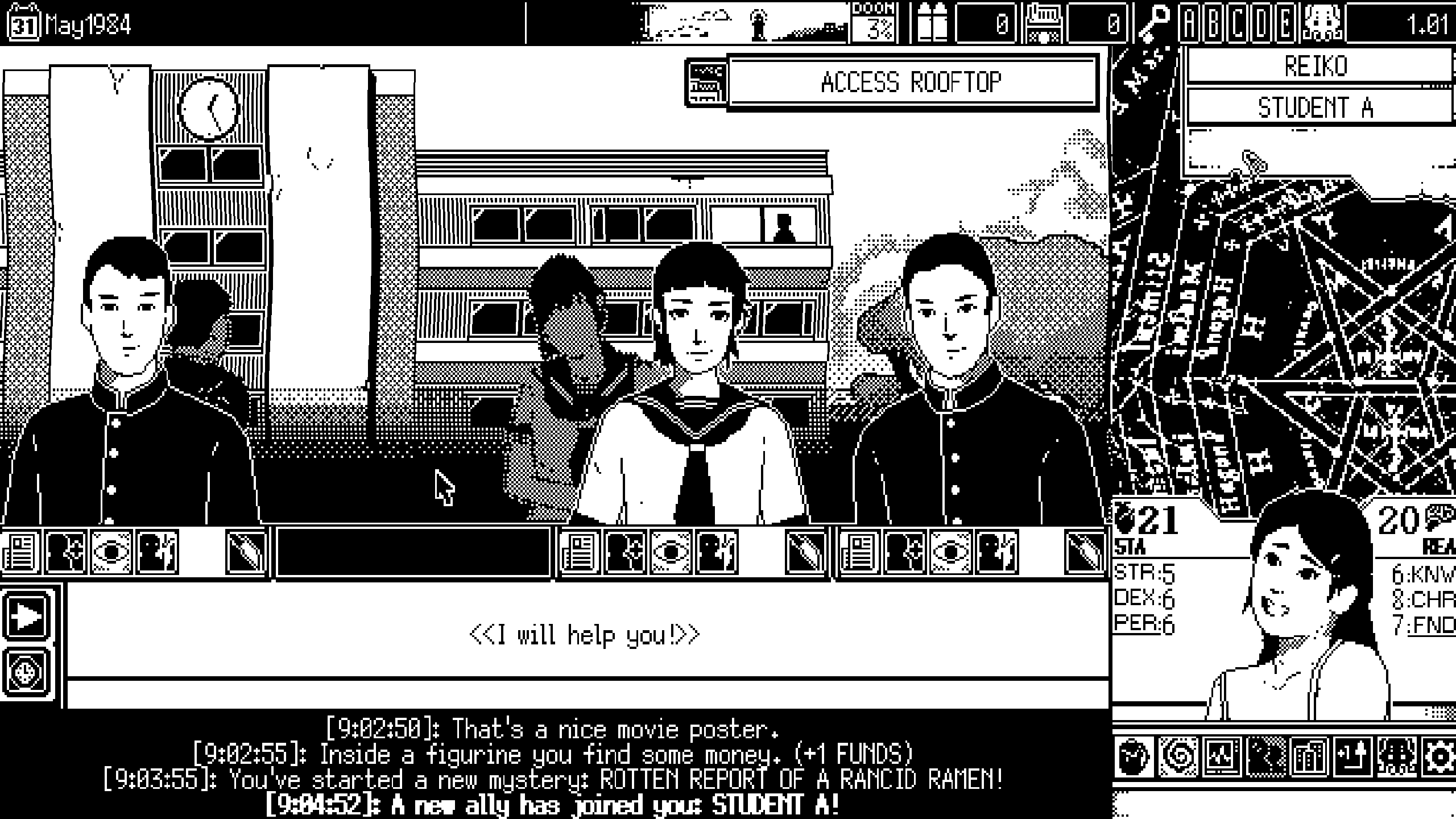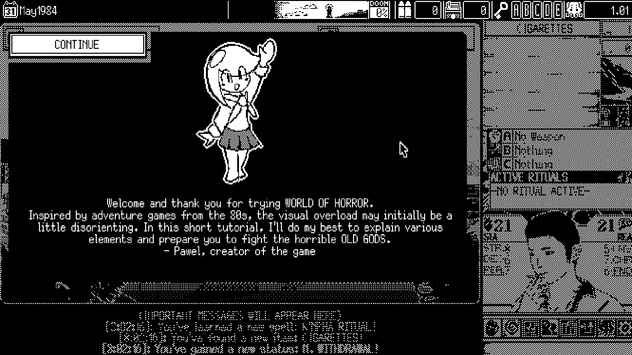 It’s been six years since WORLD OF HORROR first showed up on itchio. It eventually got picked up by a publisher and entered early access in 2020, where it was worked on here and there by developer panstasz while he was doing IRL dentist work, well off the original planned schedule. The wait was well worth it, though, as the complete 1.0 version is now done and the game has left Early Access, showing a ton of polish compared to the 2020 version, and is almost unrecognizable to the 2017 early build from way back when.