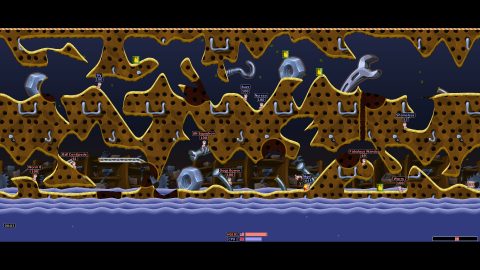 Even beyond the standard styles of Worms play, all the tools Armageddon has on offer means that there’s a multitude of other ways to play it. Not only do these unofficial styles use very specific schemes, but each comes with an assortment of rules agreed upon by the players to create new victory conditions. One variation that saw a lot of use in the game’s early years is “Shopper”, in which players start with few to now weapons, having to use their rope skills to collect crates and build up their arsenal. Further variations on this include extra rules like having to touch certain walls before being allowed to attack. While the game can’t keep track of if you actually do so or not, it’s obviously extremely poor form to go against the rules like this. Even wilder rule exist, many of which can be found either on Youtube or within replay files found online.