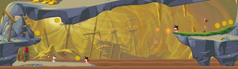 On each of the four courses on offer, there are eighteen different holes to putt your way through, each of which offers several goals to accomplish. Making par is of course, the most important, as it’s the only way you’ll progress onwards to the next hole. Each course also contains twenty coins and a hidden crate, collecting each of which will mark off two more bonus objectives. Finally, along with your traditional golf score, the game also keeps a more traditionally video game-esque scoring system. Good swings, big airtime, sinking the ball below par, and causing destruction will add to your score, and high enough scores will check off a final objective.