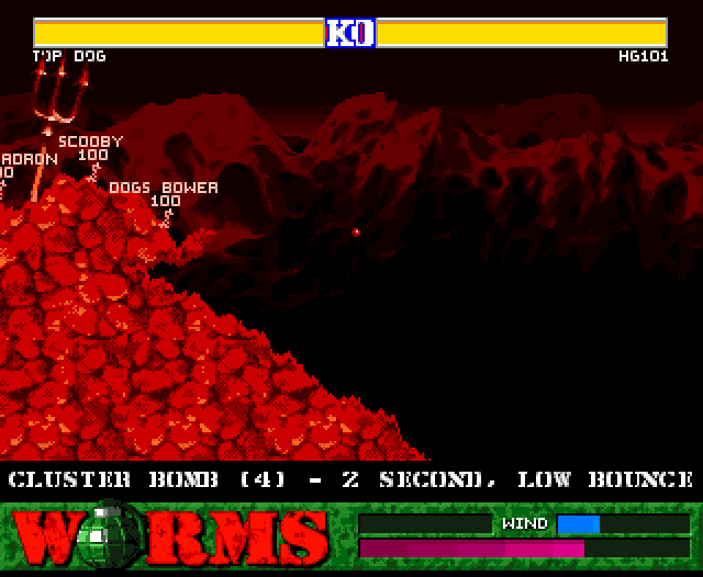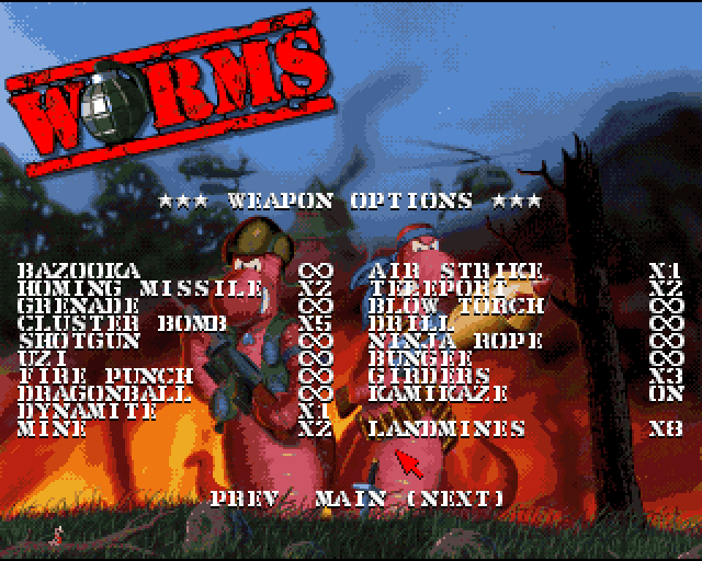 The DOS version adds an assortment of minor gameplay and visual tweaks, offering something even beyond what the Amiga version had on offer. It includes the CD soundtrack of the CD32, as well as higher resolution versions of its FMV cutscenes. Visually, there’s a new scaling effect where the camera zooms in and out to focus on the worm currently in play, some extra landscape types to battle on, and a far wider color pallet than the Amiga’s somewhat muddy color section. A number of new gameplay options are available, from minor adjustments like being able to see the time left in a round, to “Banzai Mode”, where explosions are made far more deadly, to toggling the sudden death period that occurs when time’s up. Nicest of all, however, is the ability to enter in a seed to generate a map with, should you end up find a particular favorite among the 4 billion or so. The gameplay itself is unaltered otherwise, making what stands as the gold standard of ports.
