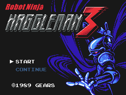 Ostensibly based on Jaleco's not-quite-classic Ninja Jajamaru-kun, Robot Ninja Haggleman puts you in the role of a tiny little ninja who must clear each stage of enemies. The stages are comprised of several floors, which you can easily jump between, and the screen scrolls horizontally, looping endlessly. Although Haggleman's main weapons are gear-shapred shurikens, these only stun most enemies - in classic video game fashion, he needs to jump on their heads to kill them. As the game progresses, you'll come across enemies that are invincible to regular attacks, and must be attacked by leaping on their heads. Clear the stage and the stage boss will pop out. These bosses are introduced as shadows at the beginning of each stage, a nicely classic touch.