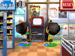 Anyway, in these types of adventure, you pretty much just go to different areas, meet with people, talk to them, and try to solve vague "puzzles", usually just by finding the right items or using the right commands. All the way, you're accompanied by Arino himself. Most of the other characters and locations are based off of episodes of Game Center CX, in addition to areas like Bandai-Namco's headquarters. In addition to the standard "move", "look" and "talk" commands, there are also "bokete miru" and "tsukkomu", which roughly translates to "act like an idiot" or "play it straight", which are based off the manzai comedy routines Arino is known for. Arino also wears his trademark compress headband when solving problems (they're usually used to absorb sweat during his challenges.)