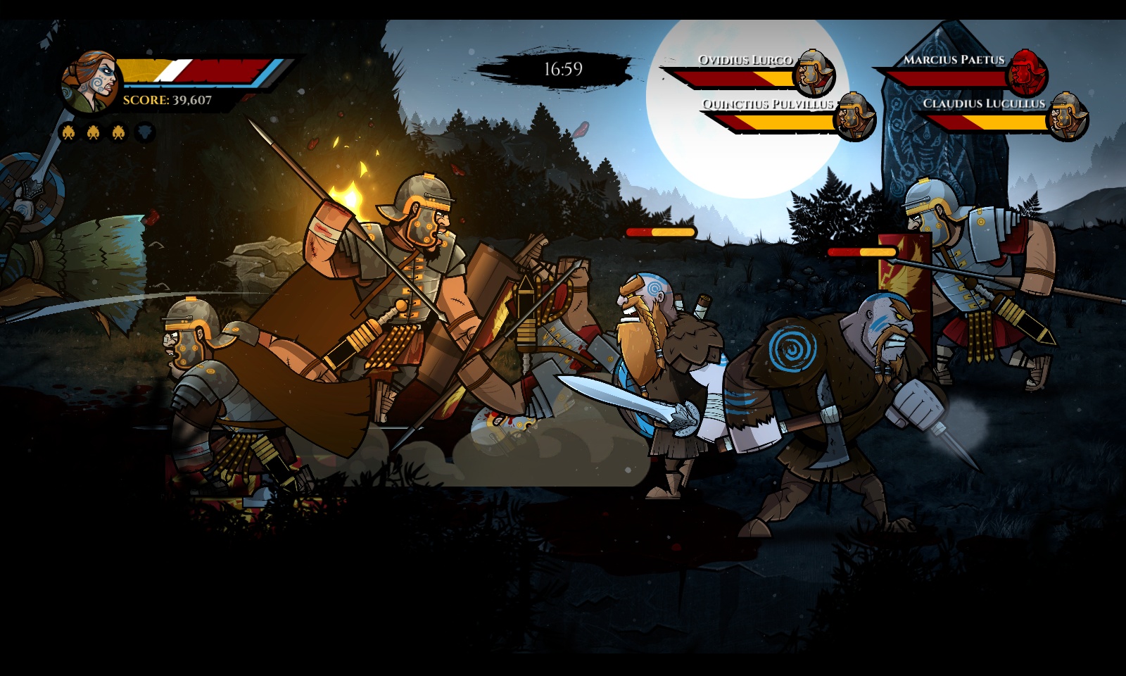 About two thousand years ago, the Roman empire made some attempts to conquer the island of Great Britain. Wulverblade, an indie beat-em-up for Windows and various consoles, takes place during one of these campaigns, as you take control of one of three British warriors to tend off their homeland from invaders. From the outset, the menus look and feel more like a Total War-type war game than an action game, though once you get into the thick of it, it’s arcade roots quickly become apparent.