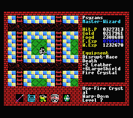 The Japanese home computers also received a second release titled Xanadu Scenario II: Resurrection of the Dragon. This was released for every platform of the original game, except for the MSX platforms. It’s technically an expansion set, since it requires that you have the original Xanadu disks in order to create your character, and it uses many of the same basic graphics. But it adds a significant amount of new features that it almost feels like a sequel. Beyond including new and different enemies, the game is now non-linear, and you can explore any of the eleven dungeons in any order. However, some are more difficult than most, so it’s generally to your advantage to stick to the lower level dungeons at first. The dungeons are 8 screens wide by 8 screens tall, compared to the 16 wide by 4 tall layouts of the original game. You can also sell back items, and each shop buys and sells different items at different prices. There are also slippery floors, and the concept of weight, effectively limiting the amount of items you can carry. Overall, it’s actually even more difficult than the original version.