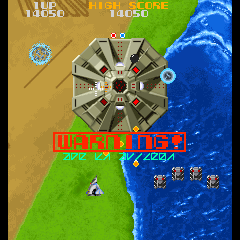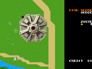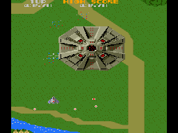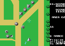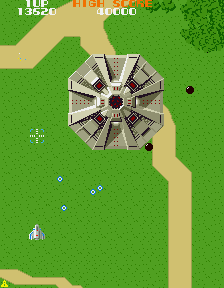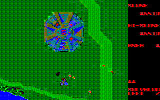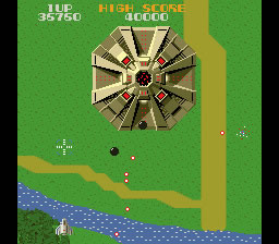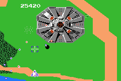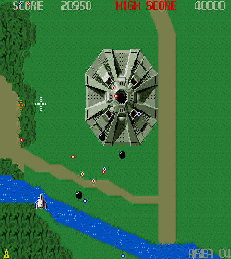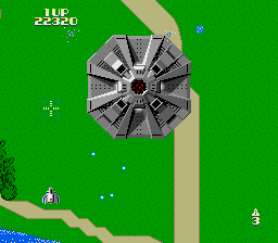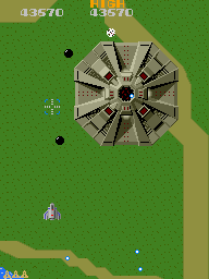 The massive flying fortress Andor Genesis is considered one of the first boss enemies ever in the history of video games. It announces its arrival by a rather creepy noise. Unlike any other air target, the lock-on Blaster is required to destroy it: it’s possible to aim directly to the core, or take out its other sensible spots, which is risky but rewards much more points. Or the player can just avoid its bullets and wait for it to flee away, which is cowardly but effective. The Andor Genesis is confronted four times before the game loops.