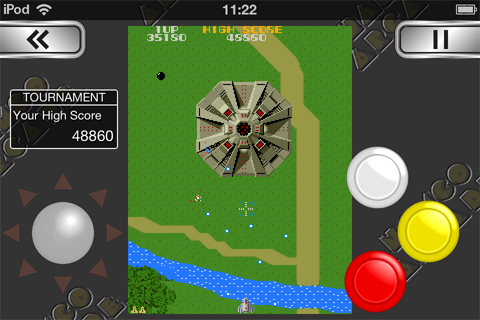 Namco also released a bunch of mobile versions, most of which remained exclusive to Japan. The first appeared in 2002 for Sharp’s J-SH51, and was accompanied by a downgraded, arranged version for regular Java based phones called Mini Xevious, which uses a zoomed-in view in place of the downscaled one in the regular version. In 2010, there was a new version for EZweb and Yahoo! phones, which featured redrawn graphics and new effects like hovering clouds and a “WARNING!” label when the Andor Genesis appears, as well as a few additional play modes. The next year, it was followed by the iOS version of Namco Museum. In 2001, Xevious also became the headlining game for Sharp’s Zaurus PDAs. Finally, Xevious has also been on several TV plug & play standalone compilation devices, including Namco Ms. Pac-Man Plug & Play with 5 TV Games, Retro Arcade Featuring Pac-Man and Namconostalgia 1.