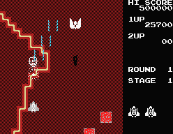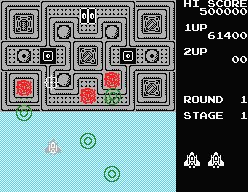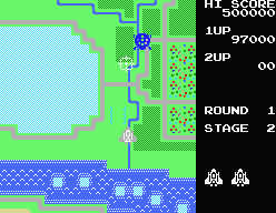 The core mechanics with the Zapper and Blaster are the same, although shooting down ground targets sometimes reveals a power-up, which may change the Zapper for a laser, speed up the player ship or stop time for a short while. The game is now more formally divided into stages with a boss at the end of each, but after the boss fight the game just keeps scrolling through like Xevious. The bosses are all huge installations with countless mounted guns. The flying enemies are a bit more out-there than in Xevious and include mosquitoes and turtles.