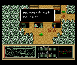 Without knowledge of Japanese, and even with the available guides, XZR can be frustrating, even more so because it gives the impression of attempting Tower of Druaga-style shenanigans. Entrances to key areas are sometimes hidden, notably the PC88 overworld map for the Alexandria caves where you need to randomly search walls. Earlier on, when you need to examine a gravestone for a vital key, you need to search on the right hand side of it since searching head-on results in a generic description. Throughout, hotspots are placed in non-intuitive places which are easily missed. Later there’s a frustrating wrap-around mountain maze – not quite as bad as the random maze in Metal Gear, but close enough. At another point an early dungeon is remixed for maximum confusion, and a follow-up dungeon has a puzzle where the boss’ door warps you back to the start (TIP: re-enter this entrance door to warp back to the boss door, and then enter this again – the game is trying to trick you into re-negotiating the entire dungeon). Then there are puzzles where you need to search for a unicorn to make medicine, or buy a flute and drop it in a lake and give it to someone in exchange for another item so you can return to Jewish village and exchange it for a further story item (this side-quest takes ages). And sometimes, even after you’ve spoken to everyone, and examined everything, nothing will happen until you sleep at an inn – which if you have full health, again isn’t very intuitive. Plus, some stores refuse to sell you items until certain conditions are met. If XZR were in English these obtuse “puzzles” wouldn’t be so bad, but when you’re dealing with them and the language barrier, it can prove challenging.