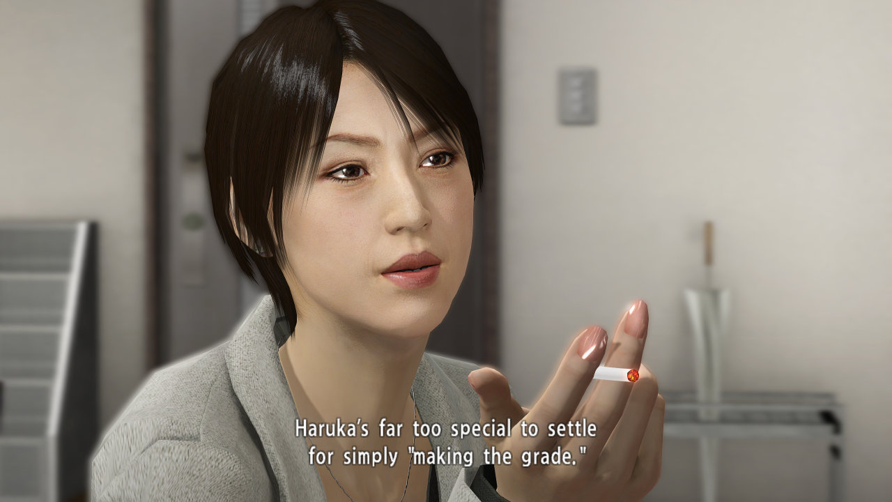 Haruka and Akiyama share part three to confused results, starting strong with showing the flip side of Haruka’s and Kiryu’s absence from the orphanage. There’s some good idol drama and an interesting relationship built with Haruka’s manager Park, a messy but complicated and compelling character, but Akiyama’s arrival at the halfway point of said part ends up being surprisingly middling. He does have a significant connection to what’s happening as Park’s bankroller, but Akiyama’s emotional connection to the plot is barely there and leaves him with without an arc or interesting angle. Heck, a single substory dealing with his former coworker from the bank he was fired from has more for his character than any part of the core narrative. As a result, he mostly sticks around doing a slightly less fun version of his detective deal from 4, and going on asides about the power of dreams to the point of annoyance.