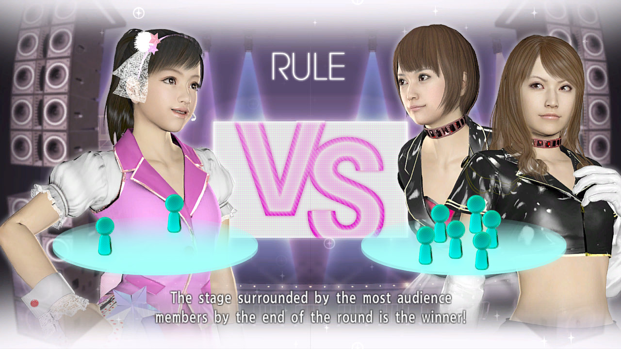 Things get unique with Haruka, and it mostly works. Since she’s competing in an idol competition, her gameplay is based around performance. The core is a simple rhythm game for idol performances, used mainly for her concert battles in the story and for adding to her side story jobs. She also gets a dance battle minigame, which is a tad more complex with the addition of heat moves and the need to switch your cursor position instead of just do the input at the right time. Doing these acts, and doing side jobs in her side story, also raises her idol stats alongside her base leveling, which help her score points in her concert performances. It all melds quite well into a satisfying loop, as do side stories do for most everyone else. Climax heat also enters her gameplay for the story concert boss battles, which allows her to transform her outfit into a flashier affair partway through her performance. It’s a fun way to give more pizzazz to these beats.
