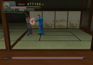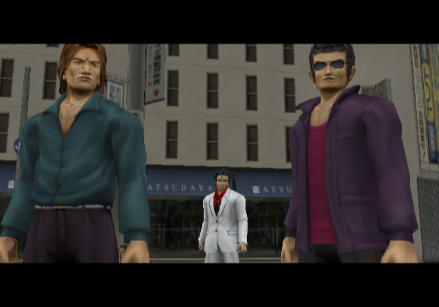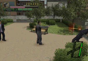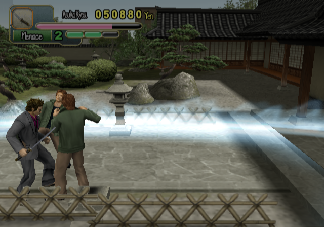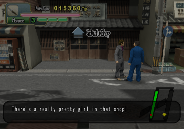 Reputation and packaging aside, things don’t immediately look up once you start to play; your character is slow, the controls awkward, and you seem to be getting knocked down a lot. You might be tempted to turn it off right then. But stick with it long enough to finish the first level, and you will gain access to a shop that sells clothes and weapons. Said clothes can not only increase you power and defense, but your speed and ease of movement, too; before long, if you know what’s good, you’ll have purchased a Grey Suit, improving gameplay considerably. By the third chapter, as enemies start packing weapons and the story gets into gear, is when Yakuza Fury really shines.