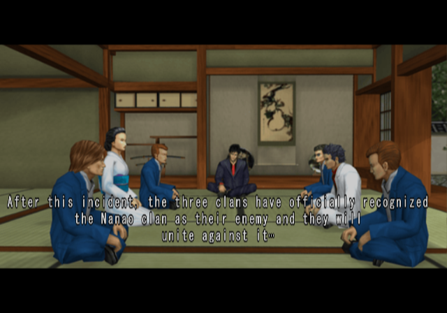 While the story’s ultimately pretty interesting, it is impaired to a degree by the mediocre localization, in which the occasional grammatically correct line can be found bumming around with poorly-worded sentences, missing words and flat-out translation mistakes, such as when a Nanao Clan leader is presented as the “Young Kurein Clan Apprentice Boss”. Good luck trying to keep the clan hierarchies in order, too, as the English words chosen to describe the different Yakuza titles are confusing and used inconsistently. A person introduced as a certain clan’s “leader” isn’t necessarily its boss, and a “young boss” may or may not be. In the end you can generally understand what’s going on, and certain moments remain genuinely badass, but it’s certainly an annoyance. Some of the descriptions attached to clothing items are vague or misleading enough to recommend consulting a FAQ, and the Japanese dub was even removed entirely, leaving lips moving to subtitles alone. At least 505 Gamestreet had the good sense to include a 60fps option in addition to then-standard 50fps PAL.