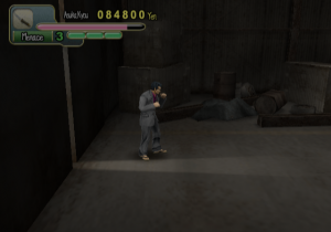 For one thing, it’s a budget game, originally released as part of D3 Publisher’s ill-reputed Simple 2000 line. The cover art to 505 Gamestreet’s European release is hideously cheap. Who’s that gun-toting lady in a red dress, standing next to a pile of loose change and a tiny plastic gun? Could she be the first gaijin woman to make it in the ranks of the yakuza? Who knows; she’s not in the game. At least the logo has a dragon in it.