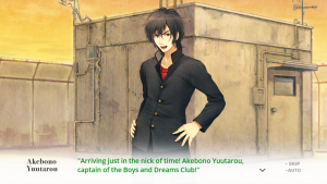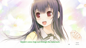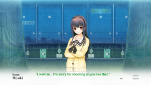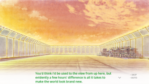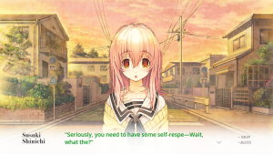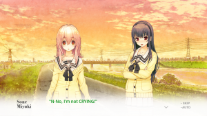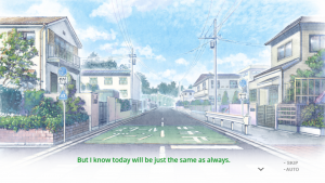 While this is how the story initially proceeds, by no means is this how it continues. Just like a similar visual novel of this nature, it grows into something of its own and builds off the knowledge that it’s just a video game (Seriously, one of the first things you hear from Aoi is “This world is a video game!”). There are some odd patches in the story, but overall, it hits hard and that’s thanks to the use of the fourth wall.