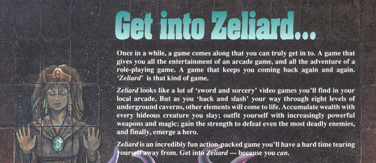 Speaking of the box of the Sierra port, the copy on the back has a tagline that is so amusingly anemic that they didn’t even bother to add an exclamation mark: “Get into Zeliard – because you can”.