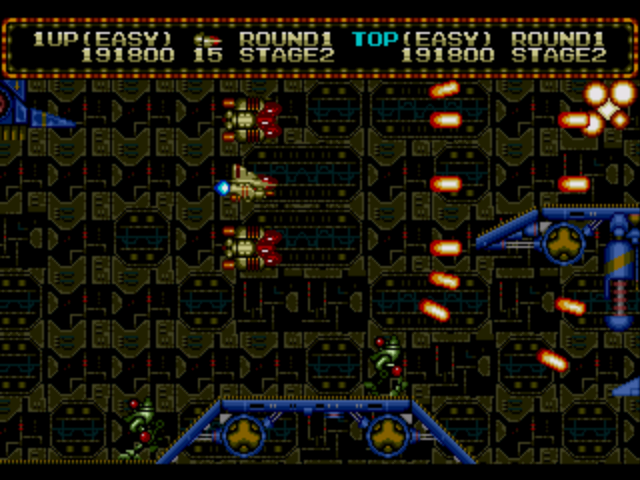 In addition to the original arcade release, Zero Wing was ported to the Mega Drive and PC Engine CD. Toaplan developed both of these versions, though the PC Engine version was published by Naxat. The home versions are quite a bit easier, and while they only grant limited credits, you probably won’t need most of them. Graphically they’re all pretty similar, though the PC Engine version adds some extra layers of scrolling and occasionally changes some background graphics. The arcade version annoyingly flashes red whenever ever enemies are killed, which is distracting, to say the least. The Mega Drive soundtrack is very close to the arcade version, using similar FM synth. The PC Engine version uses redbook audio remixes, which don’t quite pack the same punch. The music in general is quite catchy all around, though.